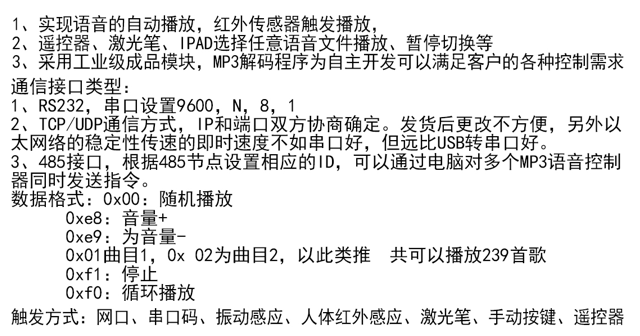 Ø 采用工业级成品模块,MP3解码程序为自主开发可以满足客户的各种控制需求